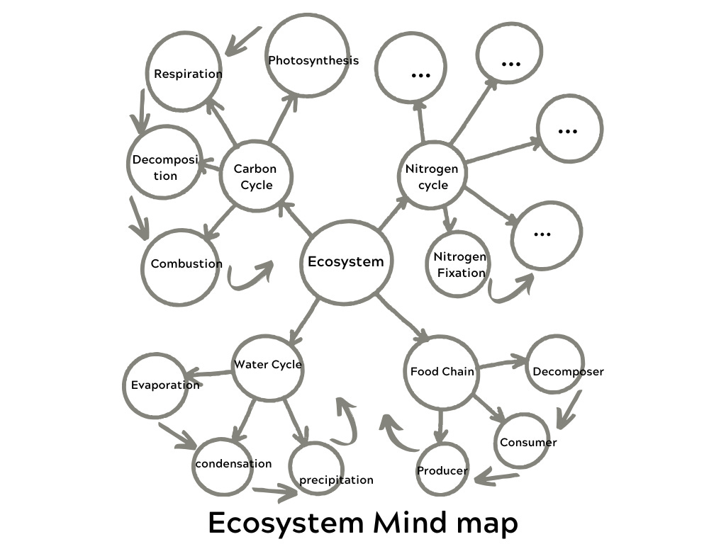 Next, you can repeat the process of how the food chain, the water cycle, the carbon cycle, etc., are all connected to the Ecosystem. And suddenly, as if by magic, it is not as hard to remember all the things.